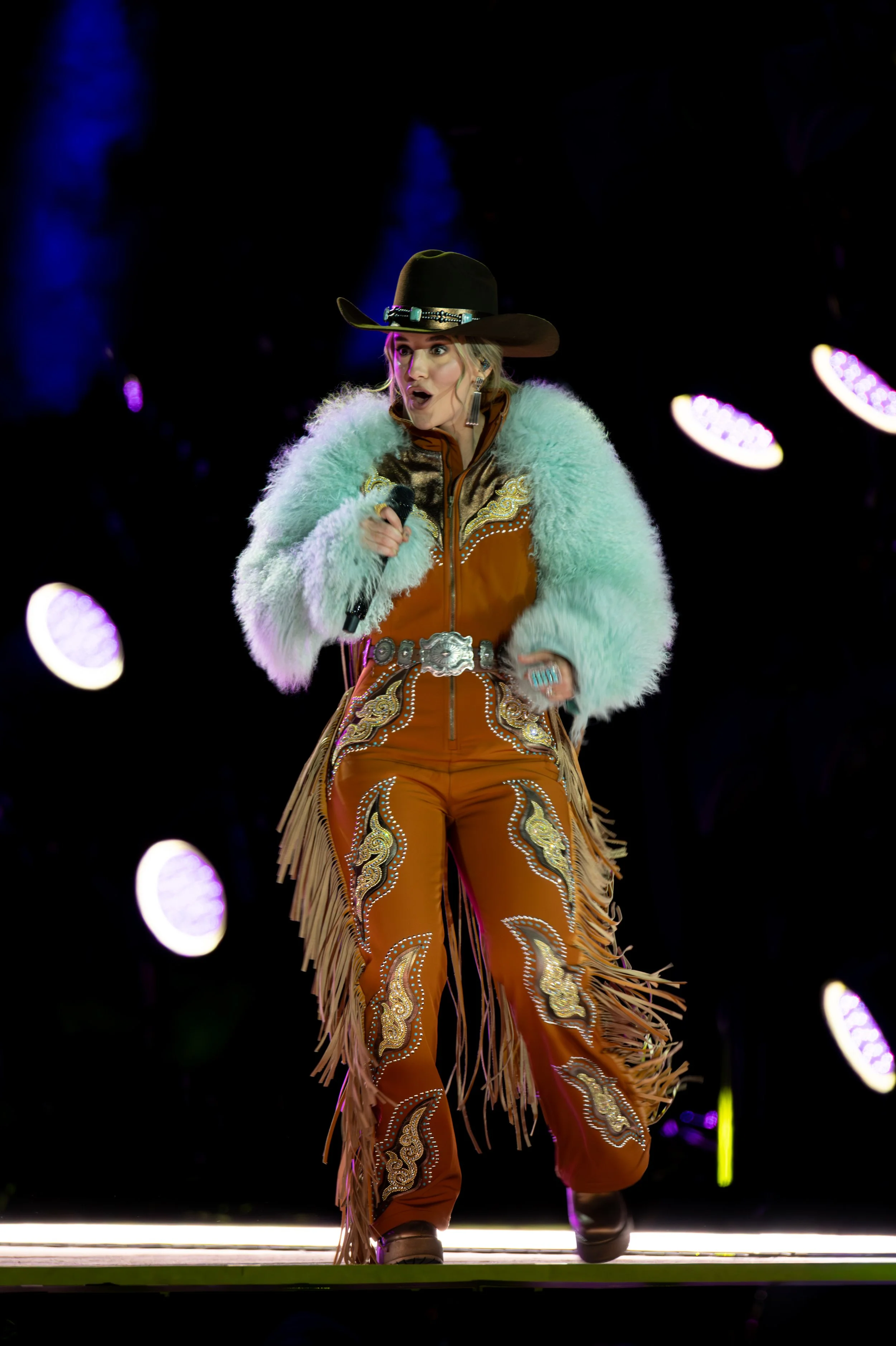 Lainey Wilson kicked off her set with a mix of signature hits and fan favorites, instantly igniting the crowd. Performing songs such as “Somewhere Over Laredo,” “Whirlwind,” and “Watermelon Moonshine,” she showcased her emotional depth and storytelling ability. The evening reached a highlight when host Hardy joined Wilson on stage for a duet of their collaboration “Wait in the Truck.” Fans sang along, waved their hands, and moved to the music as Wilson’s blend of country grit and heartfelt ballads set the tone for a memorable performance.